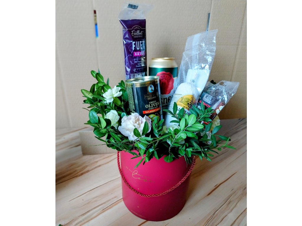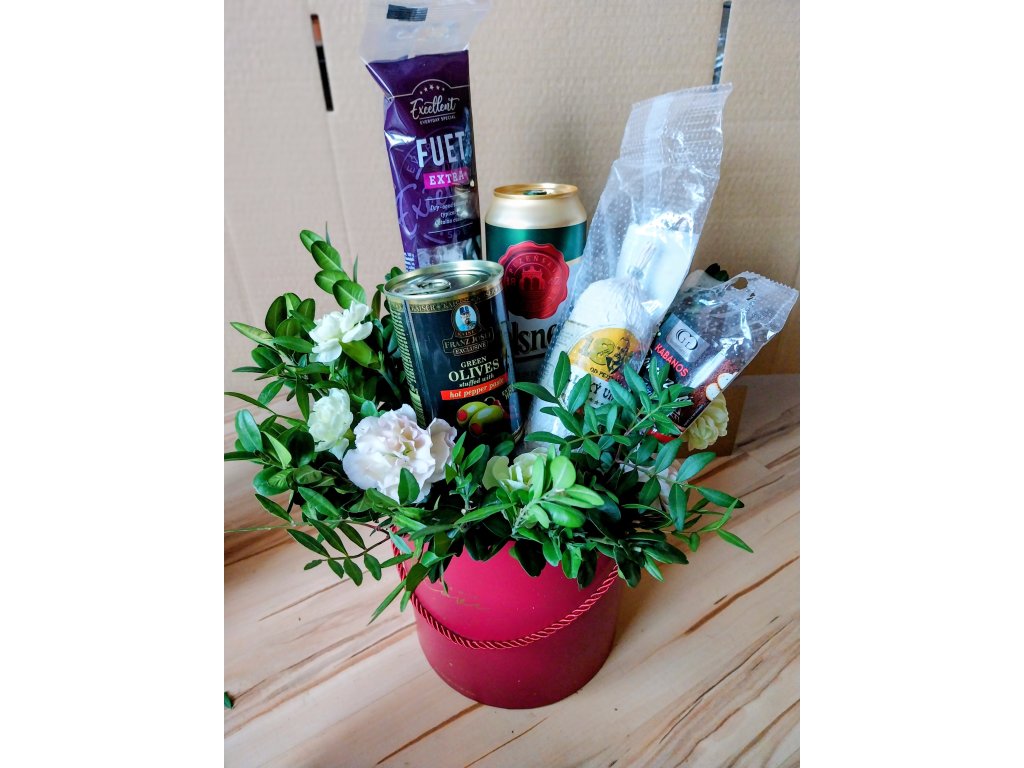 Dárkový květinový box v sýrové nebo lahůdkové variantě s Pilsner Urquell.