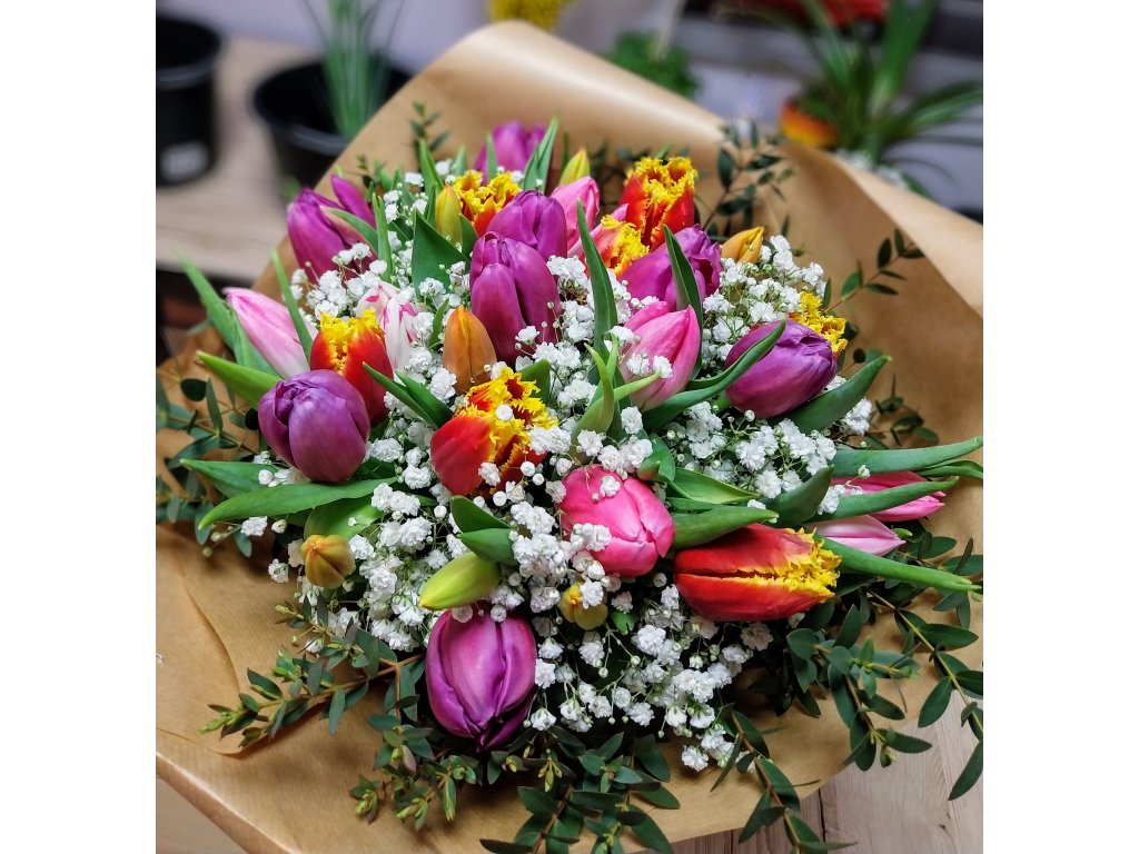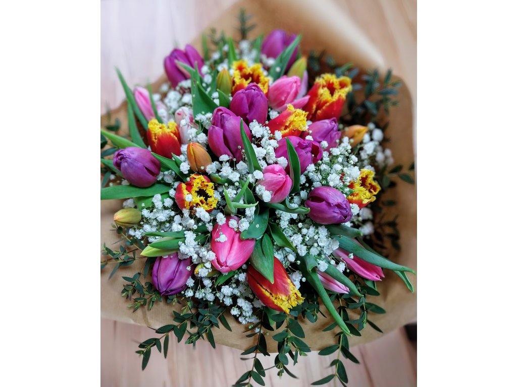 Kytici tulipánů si můžete vybrat v různých velikostech. Za příplatek Vám do kytice přidám doplňkovou zeleň (eucalyptus, pistache, gypsohpila nebo limonium).