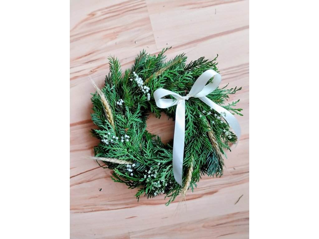 Věnec vázaný z přírodního chvojí a sušin. Vybrat si můžete z různých velikostí.